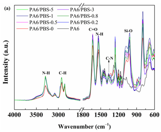 | PA6/PBS-0.8 | 80 | 20 | 0.8 | 0.2 |