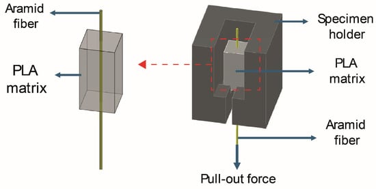 The 3D-printed pull-out test samples and pull-out test setup are shown in Figure 14. As seen in the figure, 3D-printed samples were again placed in the 3D-printed sample holder and the test was performed by pulling the aramid fiber from the tip.