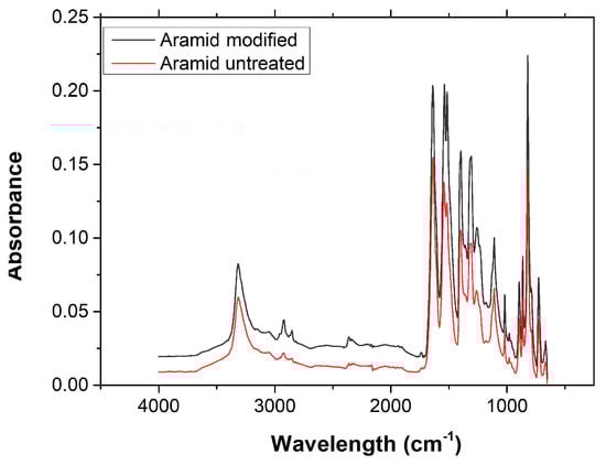 FT-IR spectra of non-modified and plasma-treated aramid fibers.