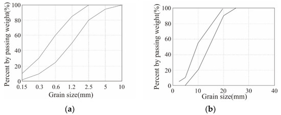 Standard particle-size distribution curves: (a) fine aggregate; (b) coarse aggregate.