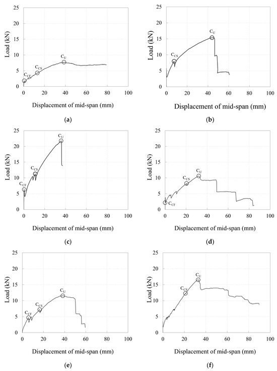 Figure 10 depicts the load–mid-span deflection relationships for the specimens.