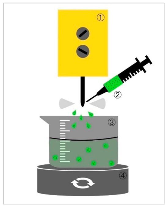 2.3. Production of Alginate Microparticles with Dental Scaler and Ultrasonic Processor