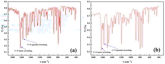 The infrared spectra of the L1 and L2 ligands are shown in Figure 1. The peak at 1625 cm⁻¹ corresponds to the stretching vibration of the C = N imine group, while the peak at 1575 cm⁻¹ corresponds to the stretching vibration of the C = N quinolyl group. No significant strong absorption peaks were observed in the 1900-1650 cm⁻¹ range, indicating the disappearance of the C = O bond and suggesting that the ligands were successfully synthesized.