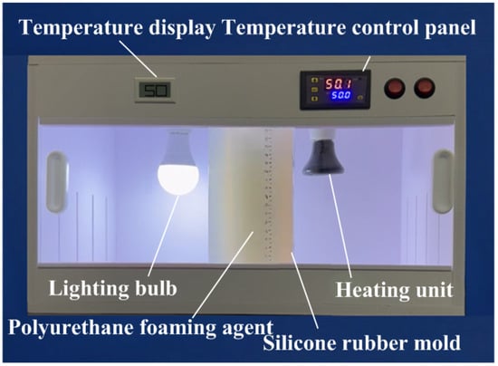 Polyurethane foam formation under temperature control within the thermostatic chamber.