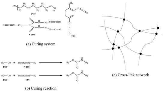 - Zhang, X.; Liu, Y.; Chai, T.; Ma, Z.; Jia, K. Curing Reaction Kinetics of the EHTPB-Based PBX Binder System and Its Mechanical Properties. Coatings 2020, 10, 1266. [Google Scholar] [CrossRef]