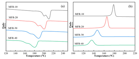 | Sample | Tc (°C) | Tm (°C) | ∆Hm (J·g−1) | Xc (%) |
