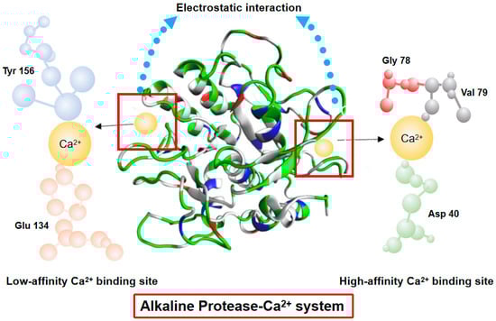 - Zhang, J.; Wang, J.; Zhao, Y.; Li, J.; Liu, Y. Study on the interaction between calcium ions and alkaline protease of bacillus. Int. J. Biol. Macromol. 2018, 124, 121–130. [Google Scholar] [CrossRef] [PubMed]