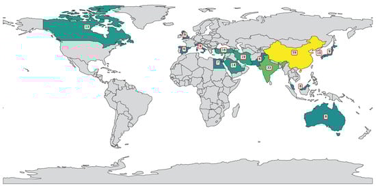 Figure 2. Country-wise distribution of publications featuring “SVR”, “SVM”, and “polymers” in title or abstract.