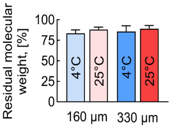Samples produced at lower temperatures showed a greater loss of molecular weight. The lower the printing temperature, the more molecular weight was lost, ranging from 10 to 15% at 25 °C to 15 to 18% at 4 °C.