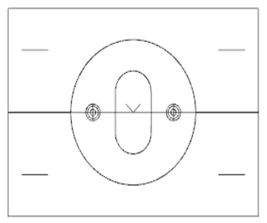 The upper template is utilized mainly to fix the mold so that the whole mold is connected with the injection machine. Usually, there is an injection hole in the upper mold seat, the size of which corresponds to the nozzle of the injection machine, and the rubber is first entered into the mold through the injection hole. The lower die seat is associated with the upper die seat, and the function is consistent. It is fixed at the bottom of the injection machine, mainly supporting the mold, as shown in Figure 6. The moving mold and the fixed mold constitute the main structure of the mold, as shown in Figure 7. The moving mold completes the opening and closing operation of the moving part of the mold, and the fixed mold is fixed on the injection machine to provide support and positioning for the mold to ensure the stability of each opening and closing process. The stator mold cavity is provided by both the fixed mold and the moving mold. The mold cavity is a cylindrical structure, in the middle of which is the core mold, which together constitutes the stator forming structure. In order to ensure the stability of the mold cavity and the moving mold, screws are used to fix it. The role of the middle template is mainly to set the first-stage shunt channel of the gating system. Because the stator flow channel adopts a multi-stage flow channel, in order to make it convenient for processing, a semi-circular flow channel is adopted on the middle template, as shown in Figure 8. A cold material well is arranged in the middle position of the first-stage shunt channel to prevent the cold material from entering the cavity during injection [11].