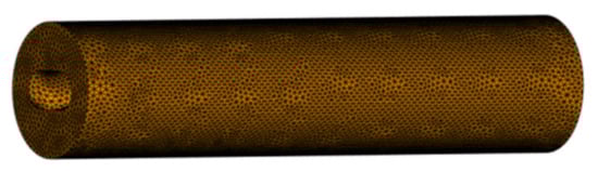 After importing the model into the software, the model is meshed first, and then the flow channel nodes are manually created according to the coordinate points. In order to ensure that the gate position is consistent with the model, the two ends of the gate are connected by a straight line and the igs format is derived. In the second step, it is imported into MOLDFLOW, and the gate grid can be obtained by clicking ‘generate grid’ in the ‘grid’ tab. The third step is to use coordinates to construct flow channel nodes, define cylinder attributes, and divide grids. The overall parameters of the gating system are shown in Table 1.
