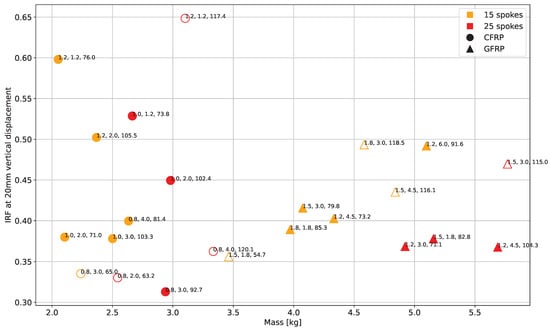- Select, from the set of the parametric study, the lightest concept with an IRF lower than AND the vertical stiffness requirement ();
