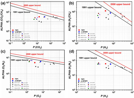 - Robeson, L.M. The upper bound revisited. J. Membr. Sci. 2008, 320, 390–400. [Google Scholar] [CrossRef]