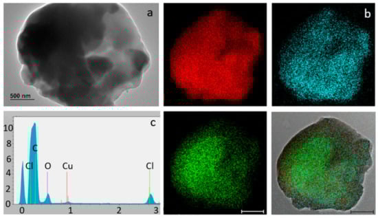 Elemental analysis was performed in STEM, bright field, and hypermap mode by EDX (Quantax software, Bruker Italia S.r.L., Milano, Italy) to determine the carbon, oxygen, and chlorine content.