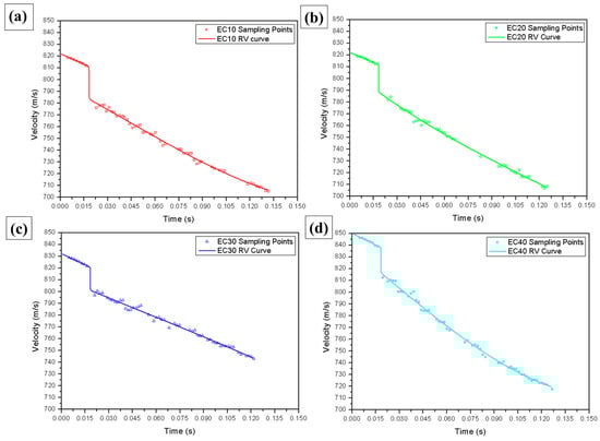 A WEIBEL SL-520P Doppler radar belonging to the Army Evaluation Center (CAEx) was used in the test. Using the data obtained by the radar, the calculation was performed using Equations (1) and (2); 8 shots were considered in each group to determine the residual velocity: