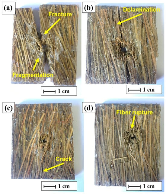 FRPCs have been gaining prominence as sustainable and efficient alternatives in various industrial sectors [5]. In the context of defense, these materials can be applied in the manufacture of ballistic vests, helmets, and lightweight structures for military vehicles, combining mechanical resistance with weight reduction [6,7]. In the aeronautical sector, they are used for internal aircraft panels and secondary structural components, providing lightness, energy efficiency, and lower environmental impact. In the automotive industry, these composites are used in door panels, interior linings, and even structural parts, contributing to reducing the weight of vehicles and, consequently, improving fuel consumption and reducing CO2 emissions [8,9]. For the wind-energy sector, they are used in the manufacture of turbine blades, offering a more ecological and sustainable alternative for the generation of renewable energy, while maintaining high durability and performance [10].