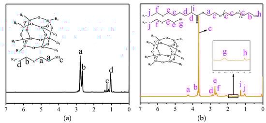1H NMR spectroscopy of POSS-SH8 (a) and POSS-SH4-EG4 (b).