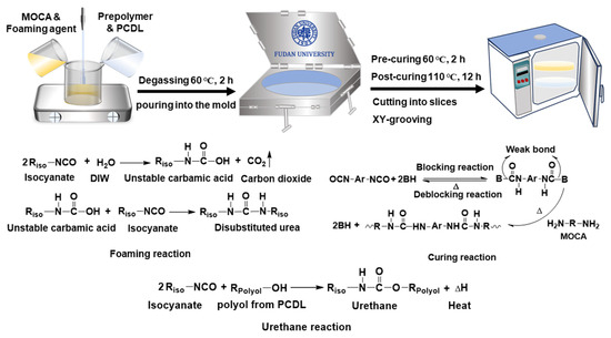 Schematic of the fabrication and reaction of PU/PCDL polishing pads.