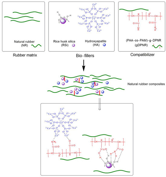 Schematic representation of the interactions of bio-fillers and gDPNR in the natural rubber composites.
