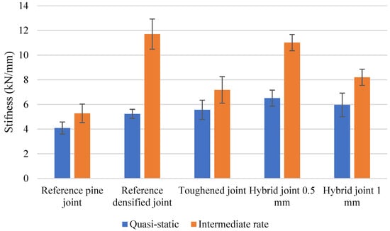 Under intermediate loading rates, viscoelastic materials like wood and bio-based adhesives exhibit increased stiffness but reduced ductility. Experimental data and numerical predictions consistently demonstrate that toughened joints withstand higher loads before damage initiation, with delayed microcracking and adhesive failure. Hybrid joints perform similarly, benefiting from the combined effects of toughened and densified components. Reference joints, on the other hand, show lower thresholds for damage initiation, with rapid crack propagation leading to early failure.