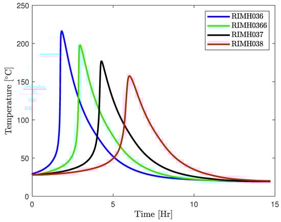 Plot of temperature development of RIMR 035c epoxy resin with four different hardeners under insulated setup [29].
