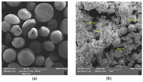 The microstructure of composite samples was studied using a high-resolution field emission scanning electron microscope TESCAN MIRA 3 LMU (TESCAN GROUP, a.s., Brno, Czech Republic) with a Schottky emitter, capable of operating at accelerating voltages from 200 V to 30 kV, providing high-magnification imaging in low-vacuum mode for non-conductive materials to allow detailed microstructural and compositional analysis in materials testing.
