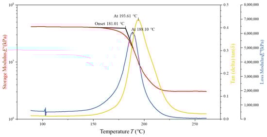 At a fixed angular frequency rad/s, corresponding to a frequency of 1 Hz, the storage modulus and loss modulus of the resin can be described by the following equations: