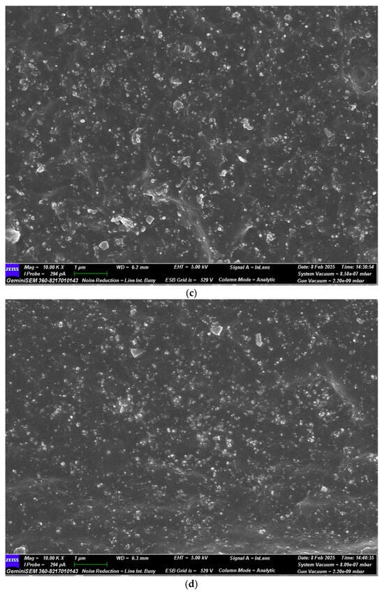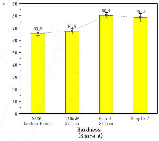 Fumed silica has high surface energy and a strong tendency to agglomerate within the rubber matrix, leading to poor dispersion [32]. Silane coupling agents modify silica’s surface, reducing its surface energy and minimizing agglomeration. This ensures uniform filler distribution and enhances mechanical and dynamic properties such as tensile strength, tear resistance, and fatigue resistance [33,34].
