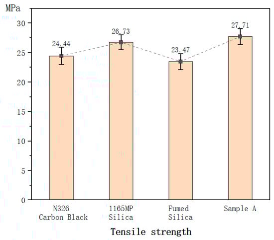 Although fumed silica exhibited slightly lower tensile strength than N326 carbon black, hydration treatment enhanced it by 16%, making it comparable to or superior to conventional fillers.