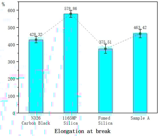 In addition to reinforcement, the interfacial interactions between fumed silica and rubber molecules generate physical constraints. These interactions form numerous rubber–filler interfaces, restricting the mobility of rubber chains and enhancing tensile strength and wear resistance [8]. The high modulus of fumed silica particles helps distribute and absorb external stresses, reducing localized stress concentrations and preventing premature failure of the rubber material [9,10].