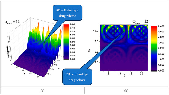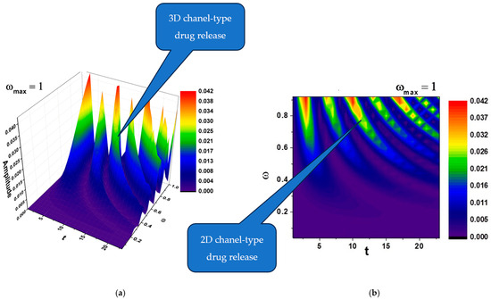 In Figure 2a,b and Figure 3a,b, self-modulations of the drug release rate in forms that can “mimic” channel-type and cellular-type self-structures are presented.