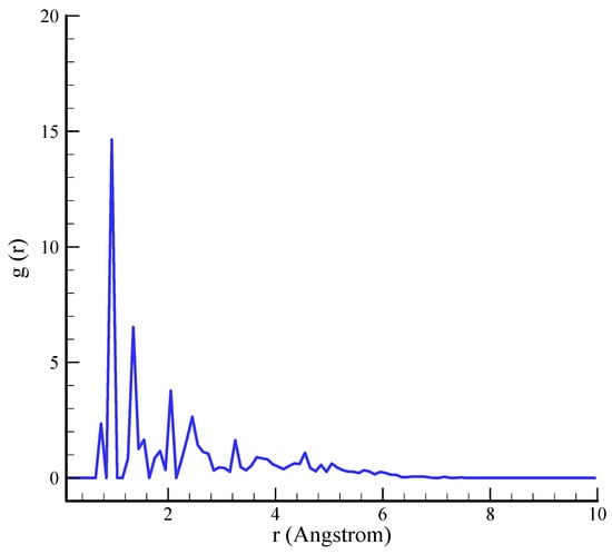 Techniques such as RDF analysis can be employed to conduct a comprehensive examination of the atomic-scale organization and behavior of silica aerogel. This method offers valuable insights into the degree of structural order or disorder, interatomic distances, and atomic coordination within the aerogel. The local atomic environment, which encompasses bond lengths and the material’s overall structural framework, can be more thoroughly comprehended through an examination of RDF profiles. These profiles provide insight into the bonding patterns and arrangement of silicon atoms, thereby revealing the process by which the porous structure is preserved. The RDF diagrams depicted in Figure 4 are consistent with the structures of these materials, which have been previously reported [].