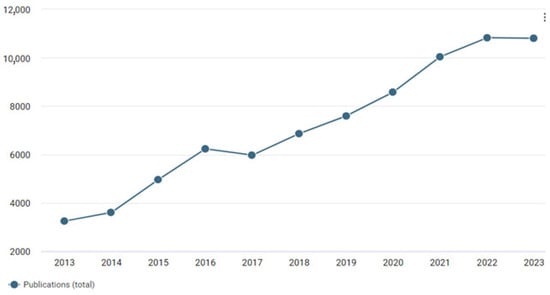 Number of publications in 2013–2023 for the query “inkjet printing” according to Dimensions.