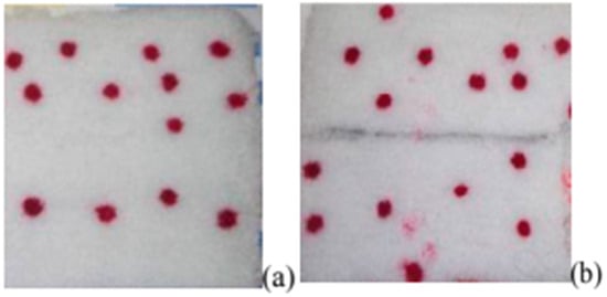 Image of circles printed on carpet materials using different ink additives: (a) Natrosol, (b) sodium alginate [].