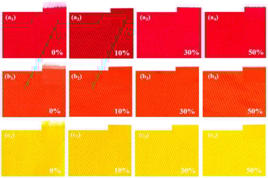 Aggregation of dye molecules is a significant issue in inkjet printing. It can cause uneven distribution of printing ink on the fabric surface, affecting printing accuracy. Therefore, it is crucial to consider the effect of inkjet ink composition on droplet formation, flight path, and substrate surface morphology []. Color inkjet inks typically contain dyes [], organic solvents [], defoamers [], pH adjusters [], and viscosity adjusters.