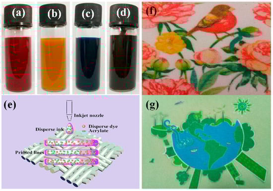 - Gao, C.; Xing, T.; Hou, X.; Chen, G. Preparation of disperse inks for direct inkjet printing of non-pretreated polyester fabrics. RSC Adv. 2019, 9, 19791–19799. [Google Scholar] [CrossRef] [PubMed]