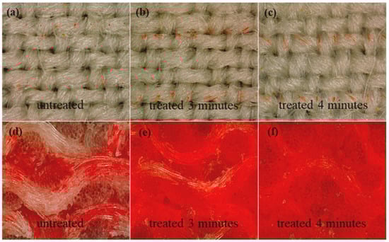 - Pransilp, P.; Pruettiphap, M.; Bhanthumnavin, W.; Paosawatyanyong, B.; Kiatkamjornwong, S. Surface modification of cotton fabrics by gas plasmas for color strength and adhesion by inkjet ink printing. Appl. Surf. Sci. 2016, 364, 208–220. [Google Scholar] [CrossRef]