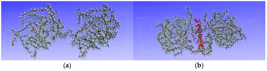 PVC surface molecular model before and after aging: (a) unaged PVC surface model, (b) aged PVC surface model.