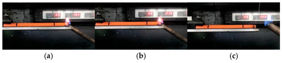 The horizontal burning test is an important method for evaluating the fire resistance level of materials. Considering the reference significance of the vertical burning test and oxygen index combustion data, it is more representative to select aged materials with relatively weak flame-retardant properties for horizontal burning analysis. Figure 6 records the horizontal combustion test process of the S1 group PVC samples. The test results show that after ignition, the PVC samples did not produce dripping. After extinguishing, their burning length did not exceed the 25 mm mark. Based on these performances, it is determined that the fire protection level of these materials is HB40.
