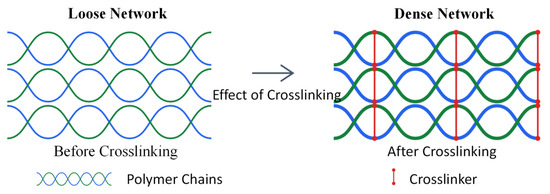 The crosslinking reaction mechanism determines the formation of the polymer network (e.g., Equation (6), Figure 5):