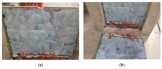During the test, a pressure-stabilizing pump was used to slowly apply water pressure, with pressure values increased stepwise at 0.05 MPa (initial pressure), 0.1 MPa, 0.2 MPa, 0.3 MPa, and 0.4 MPa. After each pressure level reached the set value, it was maintained for 30 min, and any extrusion or leakage of the grout was observed. The maximum pressure value that could be reached was recorded. The total duration for a single sample to complete all pressure levels (from 0.05 MPa to 0.4 MPa) was 3.5 h (7 intervals × 30 min each). To simulate actual engineering conditions with pressurized water, the water pressure was kept stable during the test to avoid fluctuations that could affect the results. After the test, the failure mode was observed by splitting the sample, and the leakage path was analyzed using a tracer dye (red pigment) to mark the specific location of the leakage.