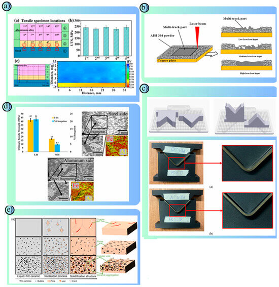 - Ozlati, A.; Movahedi, M.; Ramezani, H. Wire Arc Additive Manufacturing of Stainless Steel/Aluminum Bi-Metal Using Roll-Bonded Transition Joint. Manuf. Lett. 2025, 43, 6–11. [Google Scholar] [CrossRef]