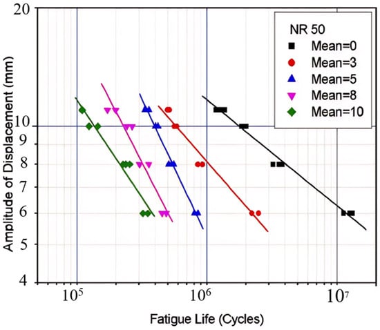 - Liu, X.; Zhao, X.; Shangguan, W. Fatigue Life Prediction of Natural Rubber Components Using an Artificial Neural Network. Fatigue Fract. Eng. Mater. Struct. 2022, 45, 1678–1689. [Google Scholar] [CrossRef]