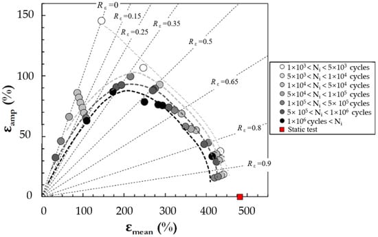- Champy, C.; Le Saux, V.; Marco, Y.; Glanowski, T.; Charrier, P.; Hervouet, W. Fatigue of Crystallizable Rubber: Generation of a Haigh Diagram over a Wide Range of Positive Load Ratios. Int. J. Fatigue 2021, 150, 106313. [Google Scholar] [CrossRef]