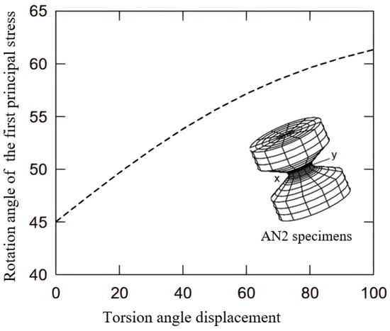 In many engineering materials that behave elastically and linearly (such as metals under small strains), principal stress and principal strain directions are aligned. However, rubber materials often exhibit complex behaviors that can cause misalignment due to rubber’s nonlinear, anisotropic, and viscoelastic properties, particularly under large deformations or complex loading conditions such as combined axial and shear loads [72].