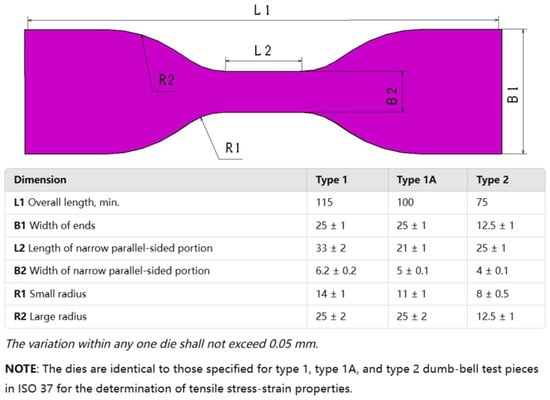 - ISO 37; Rubber, Vulcanized or Thermoplastic—Determination of Tensile Stress-Strain Properties. ISO: Geneva, Switzerland, 2024.