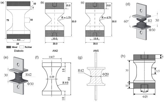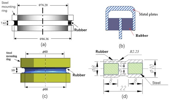 - Bauman, J.T. Fatigue, Stress, and Strain of Rubber Components: A Guide for Design Engineers; Hanser Publications: Munich, Germany; Cincinnati, OH, USA, 2008; ISBN 978-1-56990-431-2. [Google Scholar]