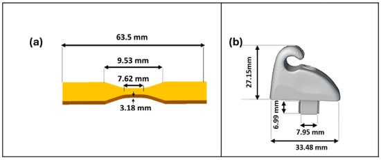 (a) The standard model. The CAD model of the dogbone is used as the standard shape according to ASTM D638. (b) The end-user automotive component. The sunvisor holder clip was conventionally manufactured by the now defunct Commodore Holder Company via injection moulding.