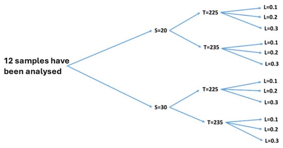 Twelve combinations have been analysed. Speed (S), temperature (T), and layer Thickness (L).