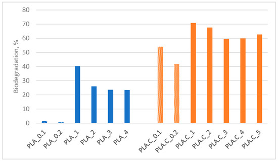The application of polylactic acid (PLA) in various fields has been widely documented, primarily due to its advantageous properties, including ease of processing, low toxicity, and high transparency. However, one of its major limitations is its slow biodegradation rate in mesophilic and psychrophilic environments [18].